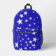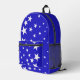 White star pattern on blue background small printed backpack