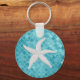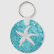 White Starfish Aqua Sea Glass Pattern Key Ring