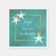 White starfish on teal stained grunge paper modern beach wedding paper napkin featuring a gold frame on dark aqua teal blue background and white starfish. This elegant summer wedding design is part of a wedding set or collection and is a totally customisable template perfect for a beach destination summer wedding. This design can be used for other occasions too, such as bridal showers, engagements or anniversaries receptions and parties.