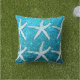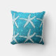 White Starfish Patterns Glittery Sparkly Teal Blue Cushion