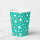 Paper cups featuring a white stars pattern against an editable background colour (click customise, go to the "Auto Warping, Wrap" layer and change the background colour)