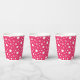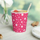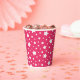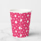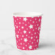 Paper cups featuring a white stars pattern against an editable background colour (click customise, go to the "Auto Warping, Wrap" layer and change the background colour)