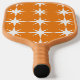 This unique pickleball paddle features white stars on a bright orange background. Personalise the text with a team name or the player’s name.