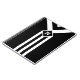 Bold mostly black geometric pattern features three alternating white and black chevrons that end at a black diamond outlined with white. It looks like a stylised medal hanging from a ribbon. The diamond contains a customisable monogram. Three white stripes extend from the bottom of the diamond to the base of the vertical design. The outer thirds of the image are black.
