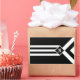 Bold mostly black geometric pattern features three alternating white and black chevrons that end at a black diamond outlined with white. It looks like a stylised medal hanging from a ribbon. The diamond contains a customisable monogram. Three white stripes extend from the bottom of the diamond to the base of the vertical design. The outer thirds of the image are black.