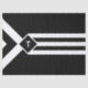 Bold mostly black geometric pattern features three alternating white and black chevrons that end at a black diamond outlined with white. It looks like a stylised medal hanging from a ribbon. The diamond contains a customisable monogram. Three white stripes extend from the bottom of the diamond to the base of the vertical design. The outer thirds of the image are black.