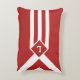 White Stripes and Chevrons on Red with Monogram Decorative Cushion