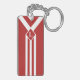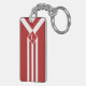 White Stripes and Chevrons on Red with Monogram Key Ring