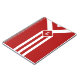 Stylish geometric pattern features bold white stripes on a red background. Three alternating white and red chevrons end at a red diamond outlined with white. It looks like a stylised medal hanging from a ribbon. The diamond contains a customisable monogram. Three white stripes extend from the opposite side of the diamond to the edge of the design. The outer thirds of the pattern are red.