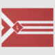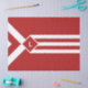 Stylish geometric pattern features bold white stripes on a red background. Three alternating white and red chevrons end at a red diamond outlined with white. It looks like a stylised medal hanging from a ribbon. The diamond contains a customisable monogram. Three white stripes extend from the opposite side of the diamond to the edge of the design. The outer thirds of the pattern are red.