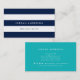 White Stripes and Custom Colour Modern Minimalist business card that features editable background colour on the front (click customise and change the background colour from blue to another colour) and on the back.
