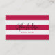 White Stripes and Custom Colour Modern Script business card that features editable background colour on the front (click customise and change the background colour from pink to another colour) and on the back.