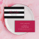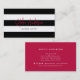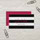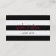 White Stripes and Custom Colour Modern Script business card that features editable background colour on the front (click customise and change the background colour from black to another colour) and on the back.