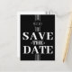 This Save the Date postcard features a group of vertical white stripes on black background. Enclosed within a round frame accented with small hearts, the couples' initials take centre stage, adding a personal touch to the card. The phrase "SAVE THE DATE" is prominently displayed in bold typography, ensuring that the important message is conveyed with clarity and elegance. This postcard is a perfect choice for couples who seek a stylish and sophisticated way to announce their upcoming wedding.