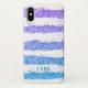 Monogrammed white grunge stripes pattern and blue and purple gradient glitter pattern