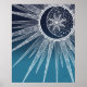 A magical, whimsy gold sun and moon mandala evening blue and teal gradient design, featuring flowers and leaves doodles, stars, dots, diamond, circles, triangles shapes, chevron, mermaid scale, geometric pattern, made with a vibrant, glowing white colour, with a crescent stage glowing moon, a mandala flower star, on a navy-blue, teal and light blue gradient background. This beautiful, mystical, universe theme, cute sun, henna, mandala style artwork, original image print.