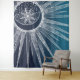 White Sun Moon Mandala Blue Gradient Design Tapestry