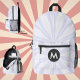 White Sunburst Monogrammed Black Circle Printed Backpack