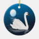 WHITE SWAN FLOATING IN WATER WITH A FULL MOON