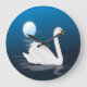 WHITE SWAN FLOATING IN WATER WITH A FULL MOON