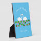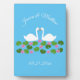 This awesome Wedding plaque features a digital art image of a pair of beautiful white swans with orange becks facing each other looking like they are kissing. Underneath the swans is a group of pretty pink water lily flowers with yellow centres and green lily pads. A beautiful wedding design. There is custom text so you can include the names of the happy couple and the Wedding date.