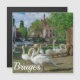 Painting of white swans resting and eating in special area near Begijnhof in Bruges, Belgium. Digital generated painting. Area designated for swans in the historic city center in Bruges old town