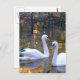 Beautiful photography of two white swans on a lake. Customise this post card by adding a greeting to the front and your own text in the back.