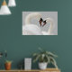 Our poster print features an original photograph of two beautiful wild white swans. The swans are gazing intently into each other's eyes, with their long graceful necks bending towards each other. The beautiful, romantic swan couple were photographed at Hogganfield Loch in Glasgow, Scotland, UK.