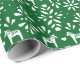 White Swedish Dala Horse on Pine Green Holiday Wrapping Paper