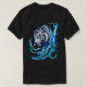 This striking white t-shirt features a bold graphic of a tiger emerging from vibrant blue flames. The tiger, depicted in mid-roar with detailed stripes and expressive eyes, exudes power and ferocity. The contrasting blue flames add a cool, dynamic element, creating a unique blend of fire and ice themes. Perfect for those looking to make a statement with their clothing, this t-shirt combines vibrant colours and dynamic imagery for a standout look. Ideal for casual wear or as a gift for someone who loves bold and artistic designs.