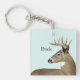 A pastel drawing of a majestic white tail buck adorns this customisable keychain!