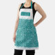 White and teal blue damask pattern with white scalloped borders apron. On the upper and the bottom parts of the apron there are white bands with scalloped edges. You can personalise it with your name.