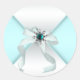White teal blue jewel bow envelope seal, party favour label and sticker. Choose your shape and size. Text can be added.