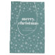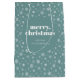 White Teal Green Merry Christmas Snowflake Pattern Medium Gift Bag