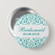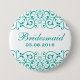 White Teal Victorian Floral Bridesmaid Button