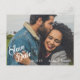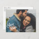 White text says "Save the Date" at the bottom left of this engagement announcement and Save the Date postcard. Directly to the right are two custom text fields for the important date and your names. The text overlays your own photograph. The back of the postcard has several additional text fields. Simple, but works very well with many photographs.