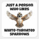 This is an AI generated image. I liked how the sparrow in the image is facing forward and has its wings open. Though I am not sure it looks exactly like a white throated sparrow.
