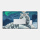 This is a beautiful white tiger desk mat design! This quality desk mat is 31.5" L x 15.5" H. It features a white tiger with her baby cubs in the snow with glowing northern lights under a full moon. Perfect for that white tiger lover!