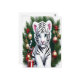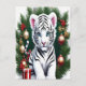 An adorable white tiger cub surrounded by holiday greenery is a great way to send a quick holiday greeting. Sure to be a hit to all types of cat lovers.