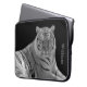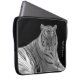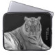 Stylish 15" laptop case with a photograph of a white tiger, on a black background. White text running up the right front side, is ready to personalise for yourself or as the purrrfect gift idea to any cat lover.