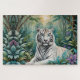 Whit tiger with blue eyes and golden stripess in a blue green rainforest jungle watercolor