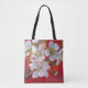 White Tree Blossoms on Red Background Tote Bag