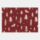 White Trees Illustrations Red Christmas Pattern Wrapping Paper Sheet