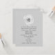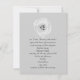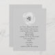 A wedding invitation featuring a light grey background on front and back. Front features an illustration of a white tulip and top. Text is dark grey.