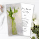 Give your guests the schedule and order of your marriage ceremony with the pretty White Tulips in Bottle Spring Wedding Program. This elegant botanical wedding program features a floral photograph of a bouquet of white tulip flower blossoms in a vintage glass milk bottle and white bridal veil with a white satin background. Perfect inspo for a classy March, April or May springtime white flowery wedding theme.