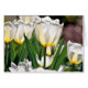 White tulips with yellow feathers glow in the afternoon sun. Note that this card may be customised with your own personal inscription.