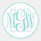 White Turq Aqua Vine Script Monogram, DIY BG Classic Round Sticker