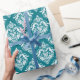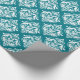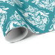 Elegant white vintage floral damask seamless pattern over turquoise blue background you can change.
