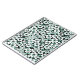 White, turquoise flowers on a black background. Small floral print.