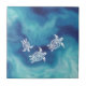 White tribal turtles on a blue watercolor background. Modern maritime design.